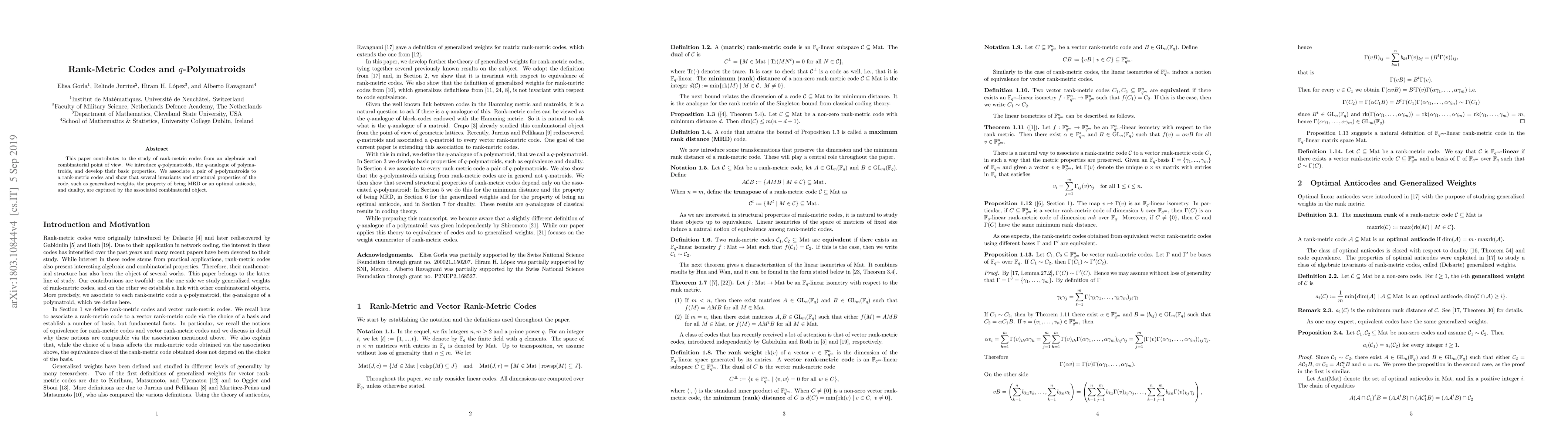 This paper explores rank-metric codes through algebraic and combinatorial lenses, introducing $q$-polymatroids as $q$-analogues of polymatroids and linking them to rank-metric codes to capture code invariants and structural properties.
