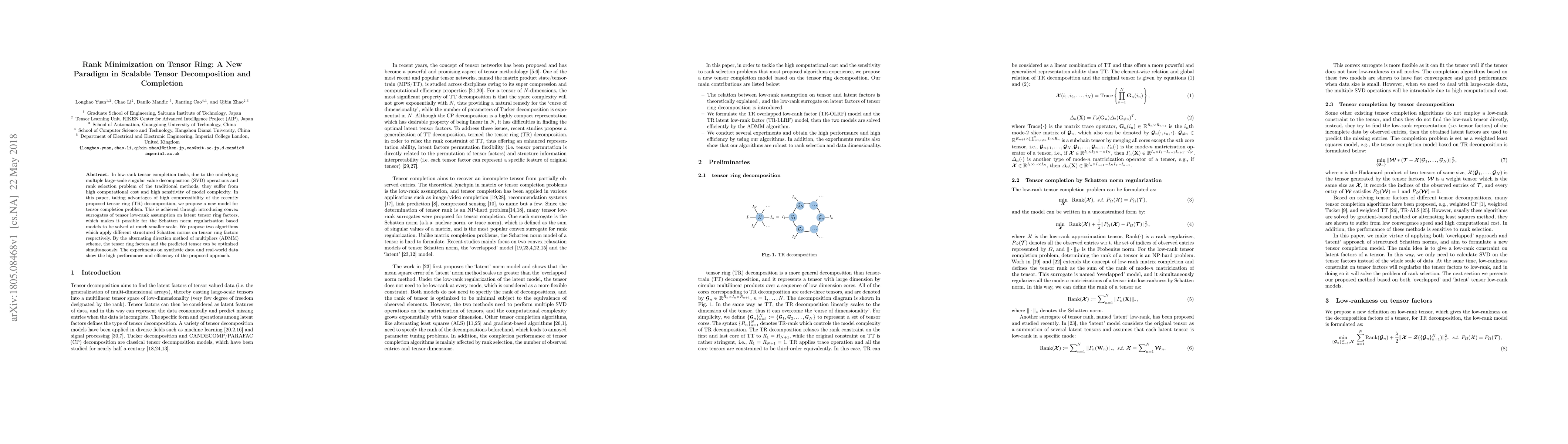 This paper proposes a new tensor completion method using tensor ring decomposition, leveraging convex surrogates to reduce computational cost. It introduces two algorithms utilizing structured Schatten norms and ADMM for optimization, demonstrating high performance and efficiency in both synthetic and real-world datasets.