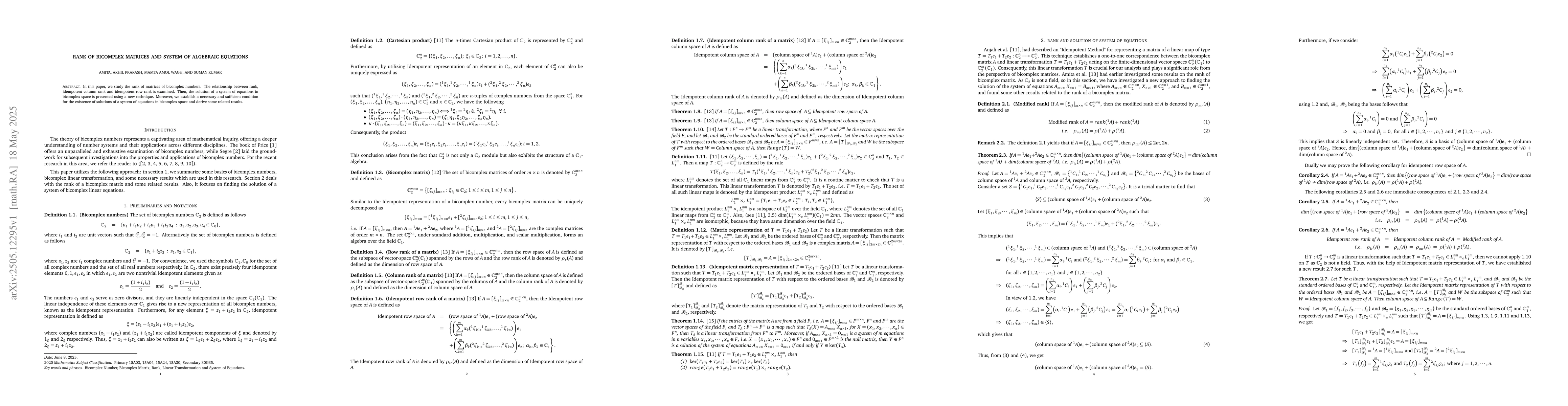 The research methodology involves studying the rank of matrices of bicomplex numbers, examining the relationship between rank, idempotent column rank, and idempotent row rank, and developing a new technique for solving a system of equations in bicomplex space.