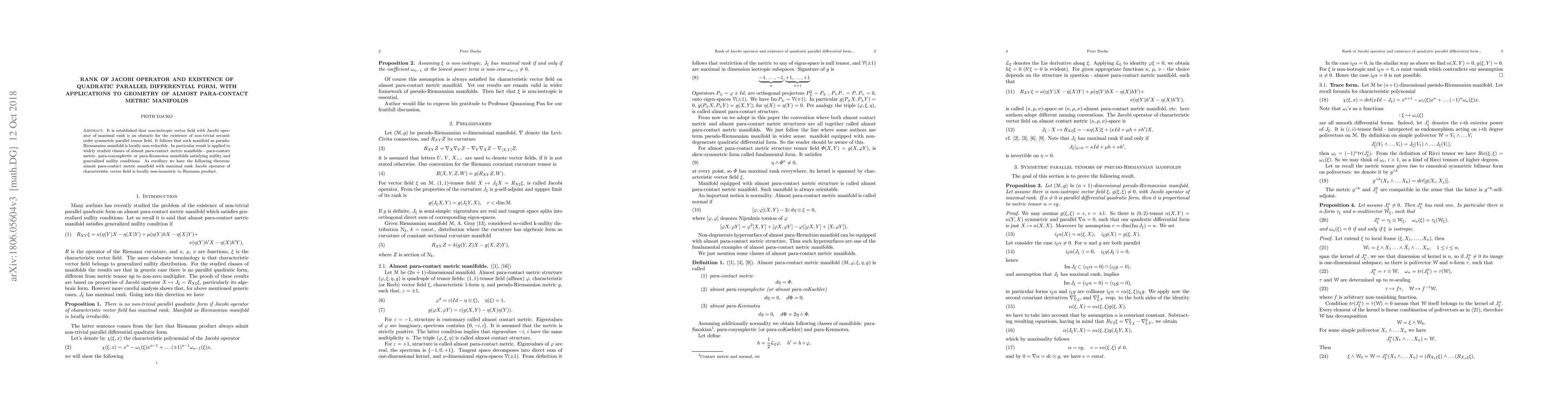 It is established that the existence of non-isotropic vector field which Jacobi operator of maximal rank is an obstacle for the existence of non-trivial second-order symmetric parallel tensor field. In turns out that presence of such obstacle follows that manifold as pseudo-Riemannian manifold is locally non-reducible. In particular result can be applied directly to known classes of almost (para-) contact metric manifolds when considered Jacobi operator of characteristic vector field has maximal rank. There is effective algorithmic procedure which resolves the problem of existence of such vector field in pure algebraic way - there is canonically defined homogeneous differential form, with coefficients determined purely by the coeffcients of curvature operator - such that non-isotropic vector field has non-degenerate Jacobi operator if and only if it is non-zero of this form.