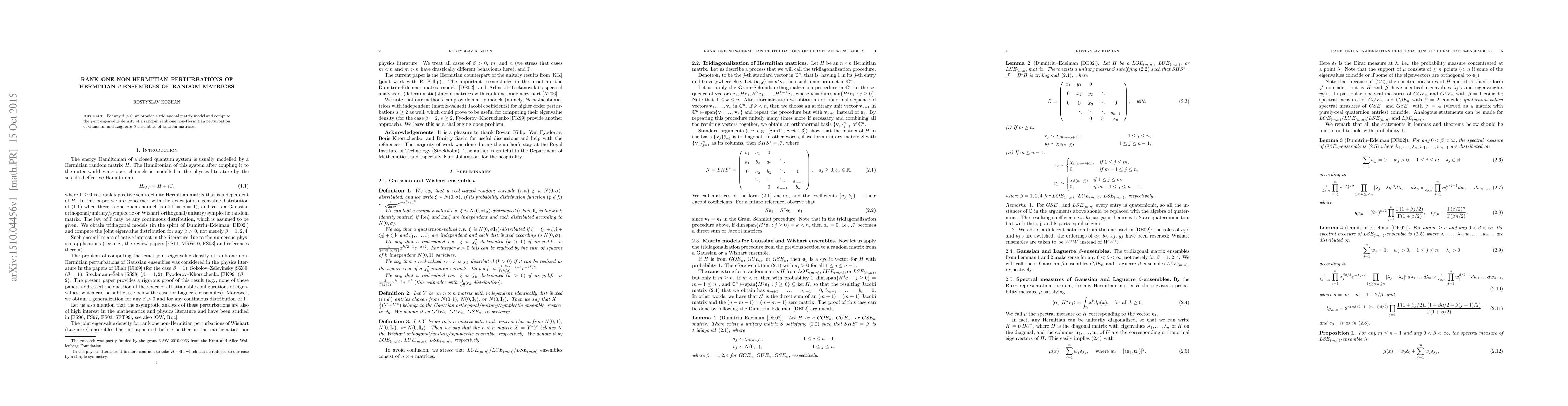 Summary: This paper presents a tridiagonal matrix model to analyze the joint eigenvalue density of rank one non-Hermitian perturbations in Gaussian and Laguerre $\beta$-ensembles, providing insights into their statistical properties.