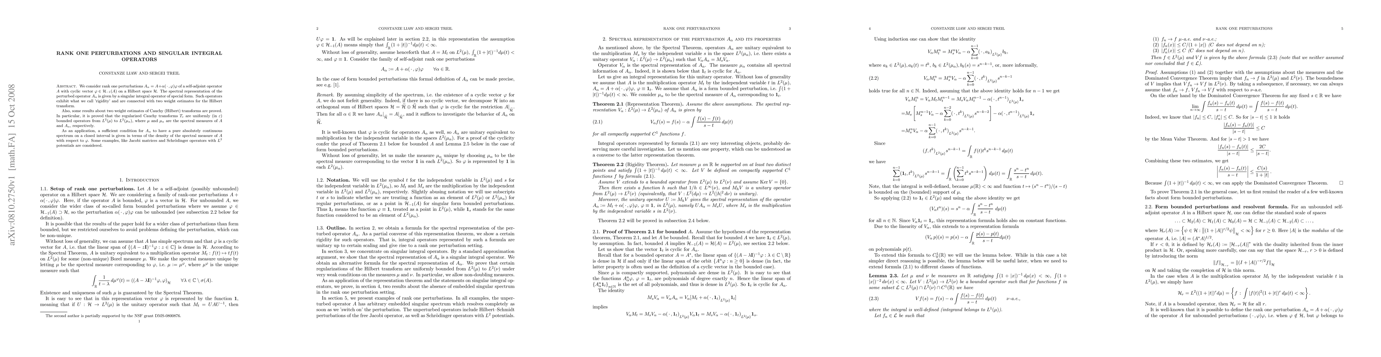 A research paper explores how small changes to a self-adjoint operator with a specific vector cause its spectrum to remain stable, leading to new insights into the behavior of related operators like the Cauchy transform.