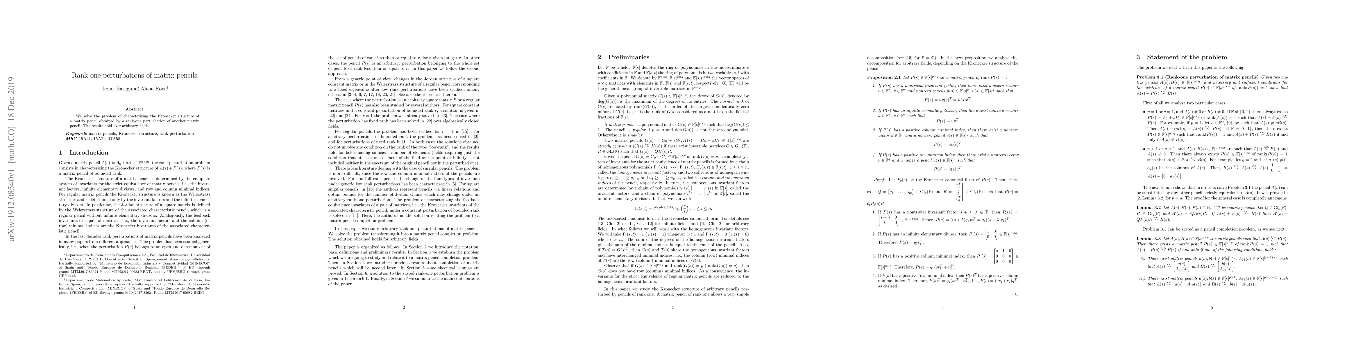 Researchers solved a problem in matrix pencils to understand how they change when one matrix is slightly altered by adding a rank-one perturbation. Their results have implications for understanding the structure of these matrices over arbitrary fields.