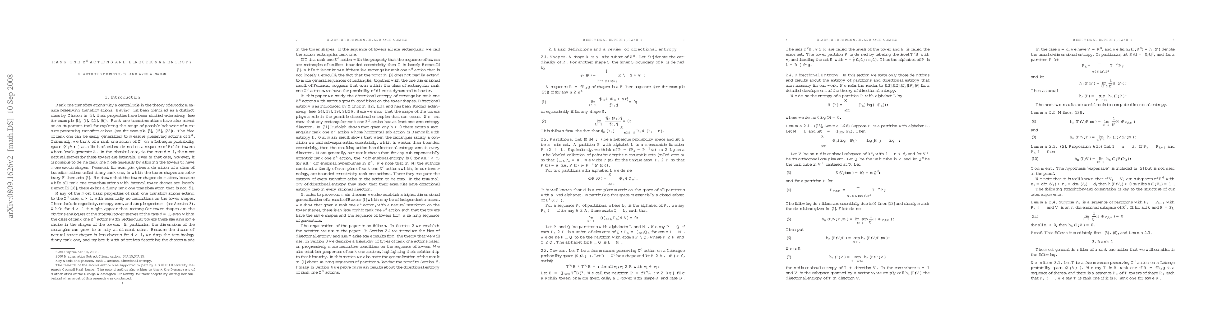 This paper investigates the directional entropy of rank one Z^d actions, demonstrating that rectangular towers lead to zero directional entropy in at least one direction. Under a "sub-exponential growth" condition, it proves that directional entropy is zero in all directions.