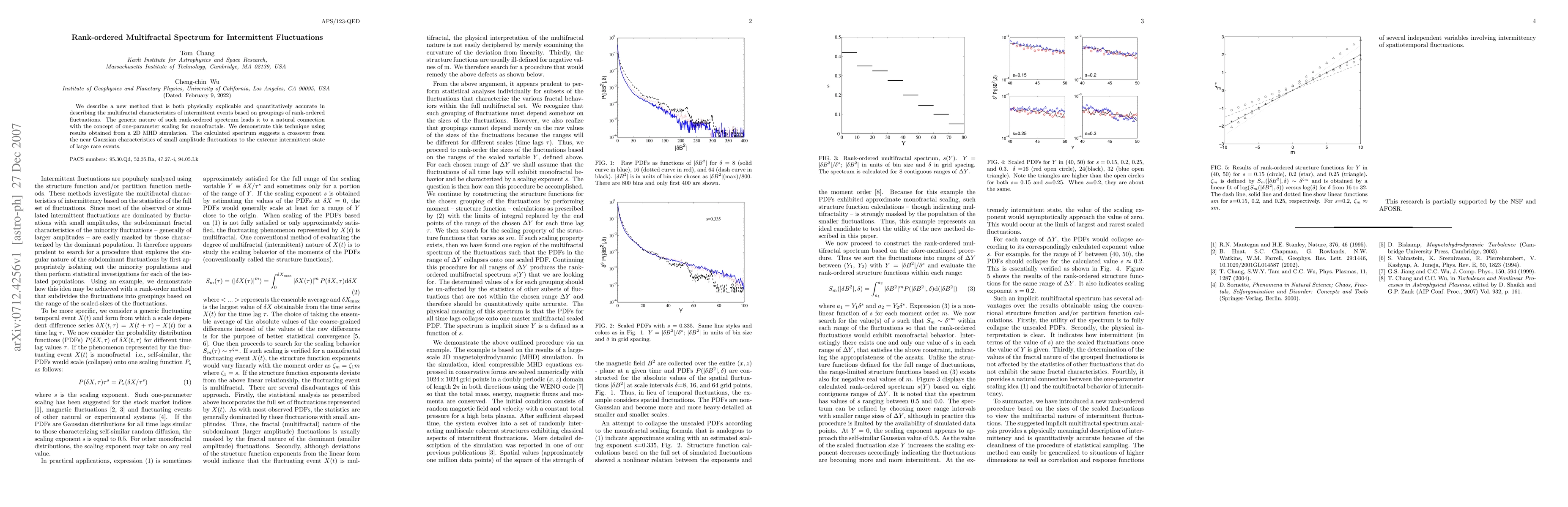 We describe a new method that is both physically explicable and quantitatively accurate in describing the multifractal characteristics of intermittent events based on groupings of rank-ordered fluctuations. The generic nature of such rank-ordered spectrum leads it to a natural connection with the concept of one-parameter scaling for monofractals. We demonstrate this technique using results obtained from a 2D MHD simulation. The calculated spectrum suggests a crossover from the near Gaussian characteristics of small amplitude fluctuations to the extreme intermittent state of large rare events.