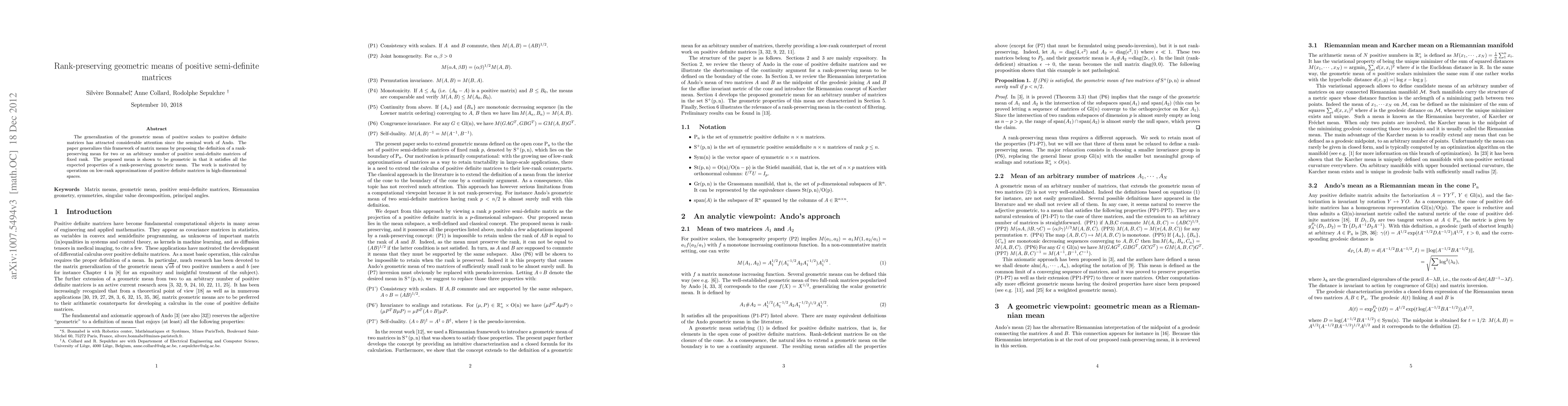 This paper proposes a rank-preserving geometric mean for positive semi-definite matrices, ensuring it retains the original matrix rank. It demonstrates the proposed mean's properties and its relevance to low-rank approximations in high-dimensional spaces.