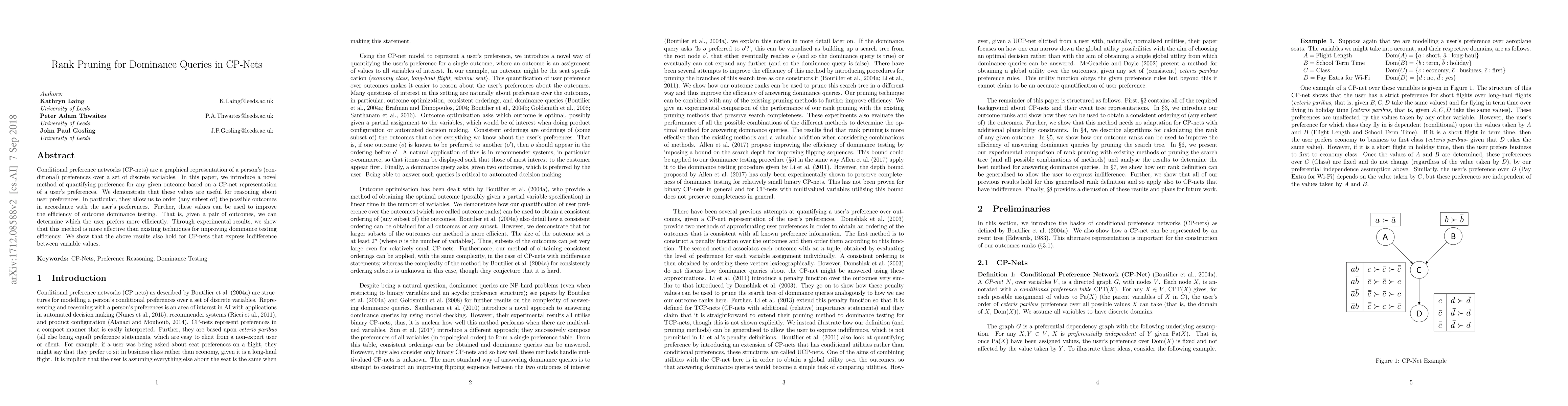 Conditional preference networks (CP-nets) are a graphical representation of a person's (conditional) preferences over a set of discrete variables. In this paper, we introduce a novel method of quantifying preference for any given outcome based on a CP-net representation of a user's preferences. We demonstrate that these values are useful for reasoning about user preferences. In particular, they allow us to order (any subset of) the possible outcomes in accordance with the user's preferences. Further, these values can be used to improve the efficiency of outcome dominance testing. That is, given a pair of outcomes, we can determine which the user prefers more efficiently. Through experimental results, we show that this method is more effective than existing techniques for improving dominance testing efficiency. We show that the above results also hold for CP-nets that express indifference between variable values.