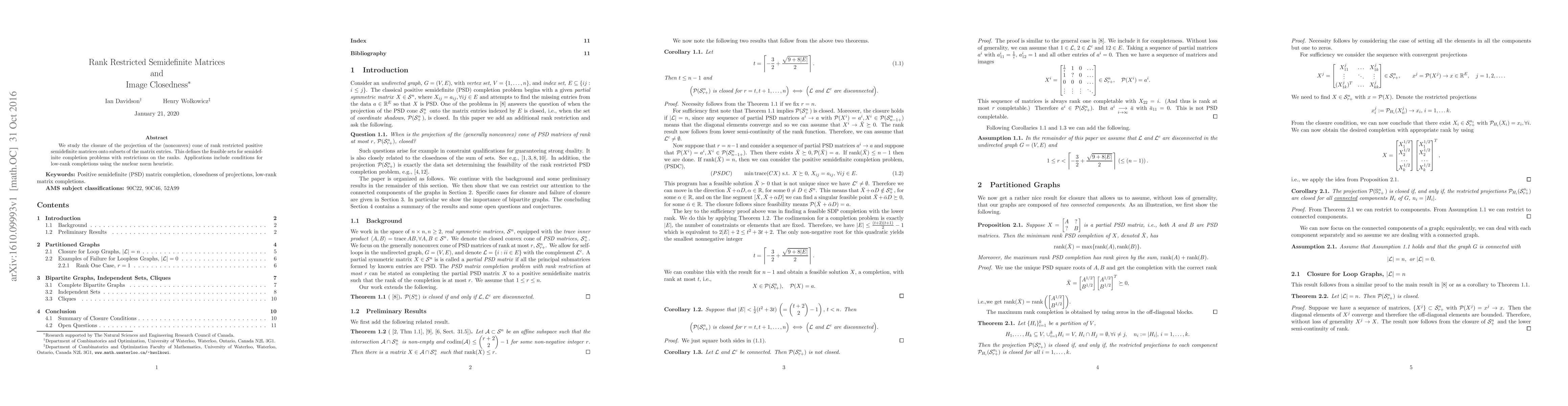 This paper investigates the closure of projected sets of rank-restricted positive semidefinite matrices, providing feasible sets for semidefinite completion problems under rank constraints, with implications for low-rank completions via nuclear norm heuristics.