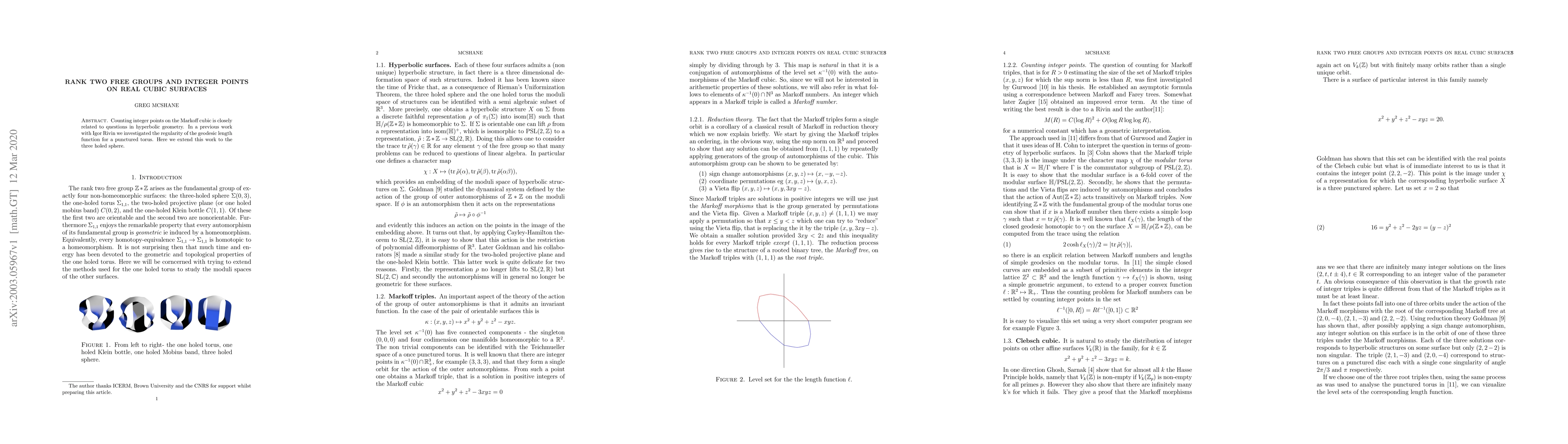 Counting integer points on the Markoff cubic is closely related to questions in hyperbolic geometry. In a previous work with Igor Rivin we investigated the regularity of the geodesic length function for a punctured torus. Here we extend this work to the three holed sphere and related orbifolds.