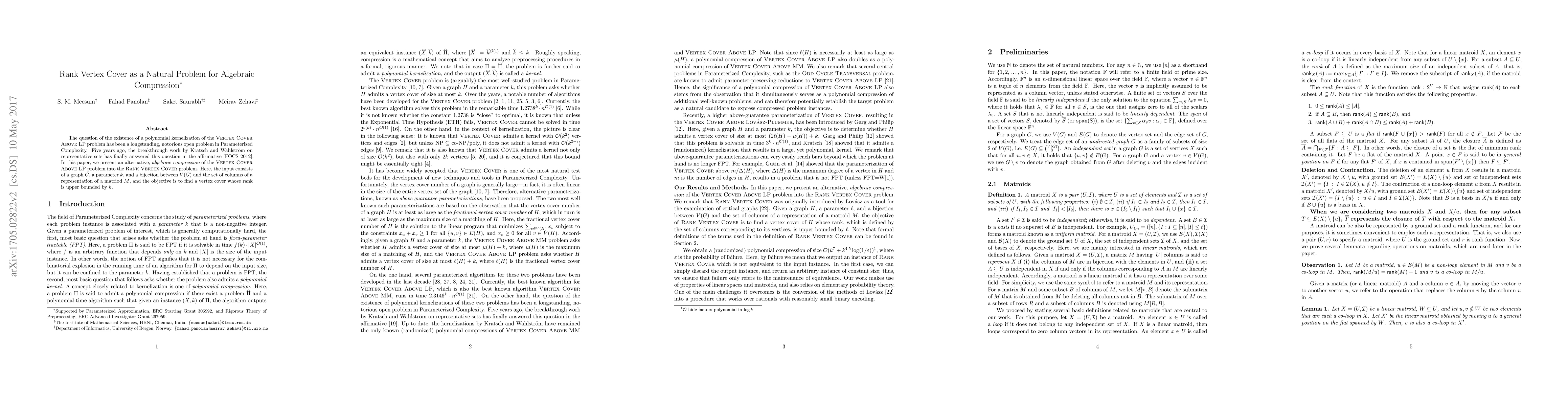 Researchers find a new way to solve the Vertex Cover Above LP problem using algebraic compression, transforming it into the Rank Vertex Cover problem with a promising polynomial kernelization.