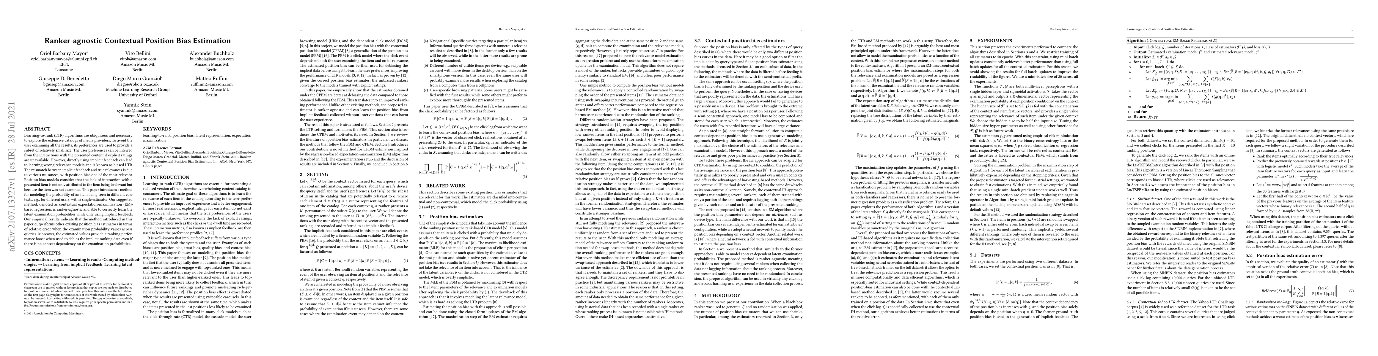 This research introduces a ranker-agnostic method, contextual (EM)-based regression, to model item visibility probabilities across different contexts using only implicit feedback. The method outperforms existing position bias estimators, improving ranking performance even without context-dependent examination probabilities.