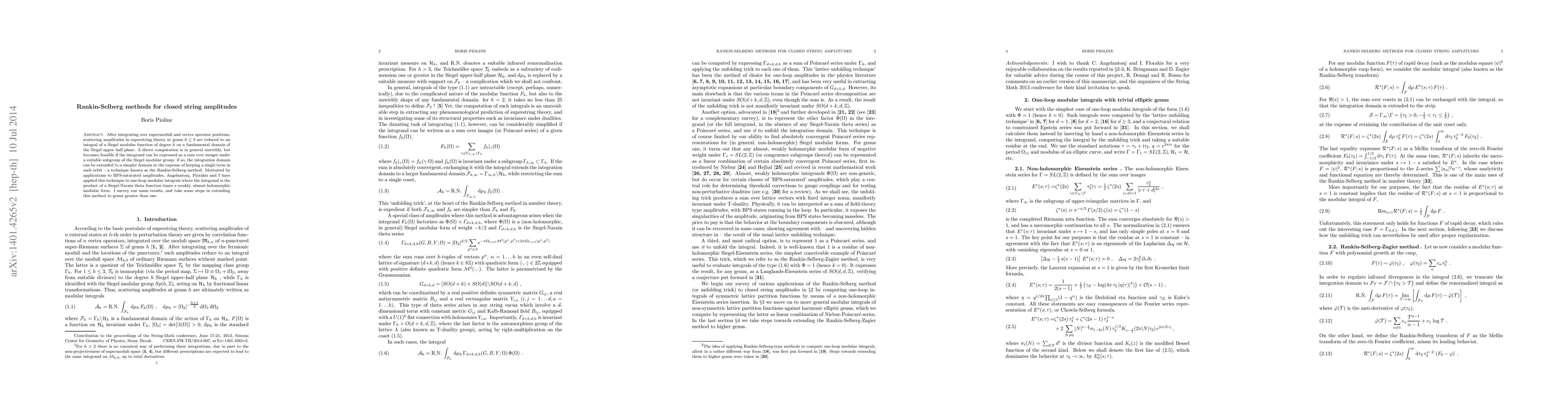 After integrating over supermoduli and vertex operator positions, scattering amplitudes in superstring theory at genus $h\leq 3$ are reduced to an integral of a Siegel modular function of degree $h$ on a fundamental domain of the Siegel upper half plane. A direct computation is in general unwieldy, but becomes feasible if the integrand can be expressed as a sum over images under a suitable subgroup of the Siegel modular group: if so, the integration domain can be extended to a simpler domain at the expense of keeping a single term in each orbit -- a technique known as the Rankin-Selberg method. Motivated by applications to BPS-saturated amplitudes, Angelantonj, Florakis and I have applied this technique to one-loop modular integrals where the integrand is the product of a Siegel-Narain theta function times a weakly, almost holomorphic modular form. I survey our main results, and take some steps in extending this method to genus greater than one.