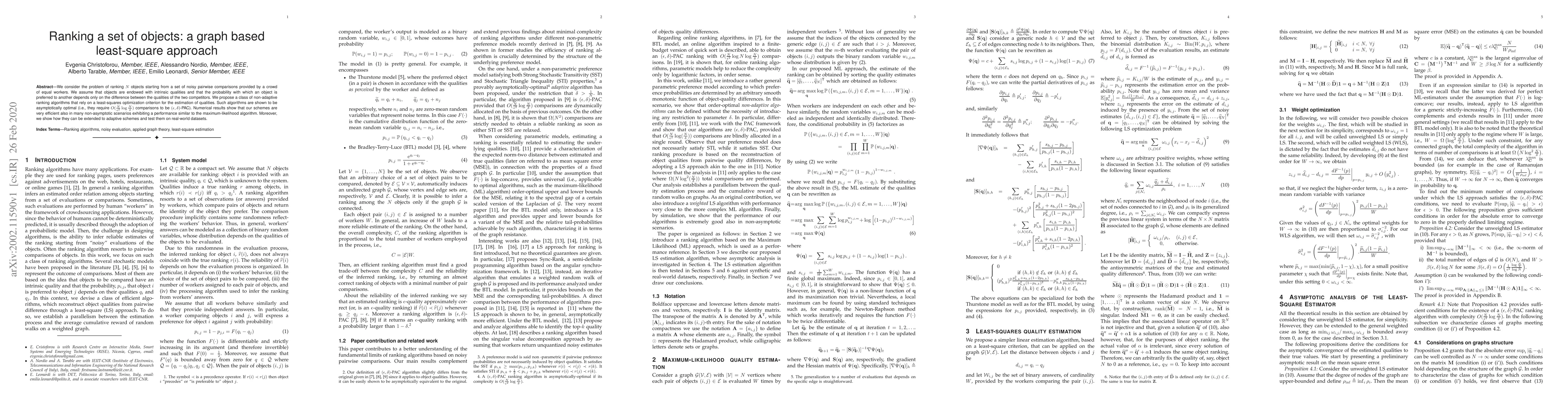 We consider the problem of ranking $N$ objects starting from a set of noisy pairwise comparisons provided by a crowd of equal workers. We assume that objects are endowed with intrinsic qualities and that the probability with which an object is preferred to another depends only on the difference between the qualities of the two competitors. We propose a class of non-adaptive ranking algorithms that rely on a least-squares optimization criterion for the estimation of qualities. Such algorithms are shown to be asymptotically optimal (i.e., they require $O(\frac{N}{\epsilon^2}\log \frac{N}{\delta})$ comparisons to be $(\epsilon, \delta)$-PAC). Numerical results show that our schemes are very efficient also in many non-asymptotic scenarios exhibiting a performance similar to the maximum-likelihood algorithm. Moreover, we show how they can be extended to adaptive schemes and test them on real-world datasets.