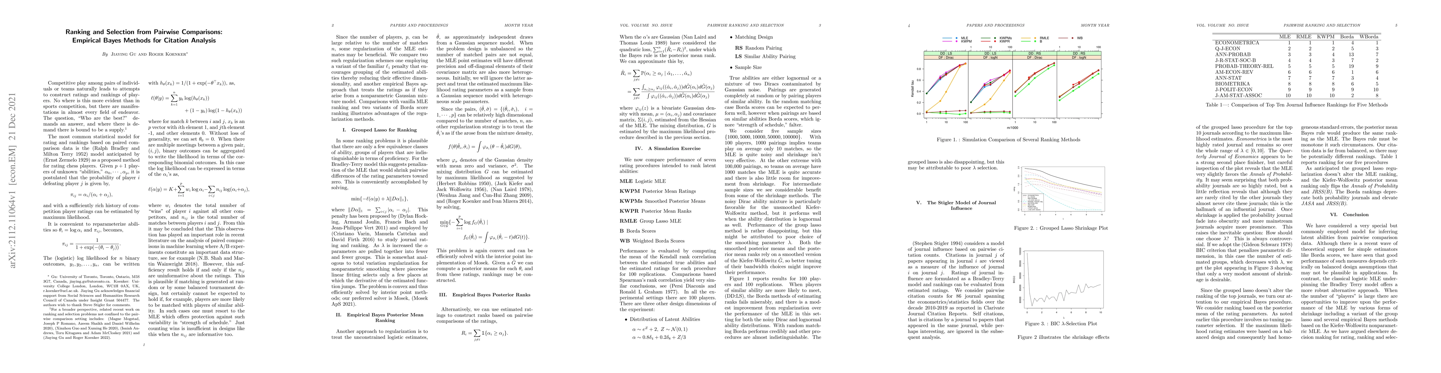 We study the Stigler model of citation flows among journals adapting the pairwise comparison model of Bradley and Terry to do ranking and selection of journal influence based on nonparametric empirical Bayes procedures. Comparisons with several other rankings are made.