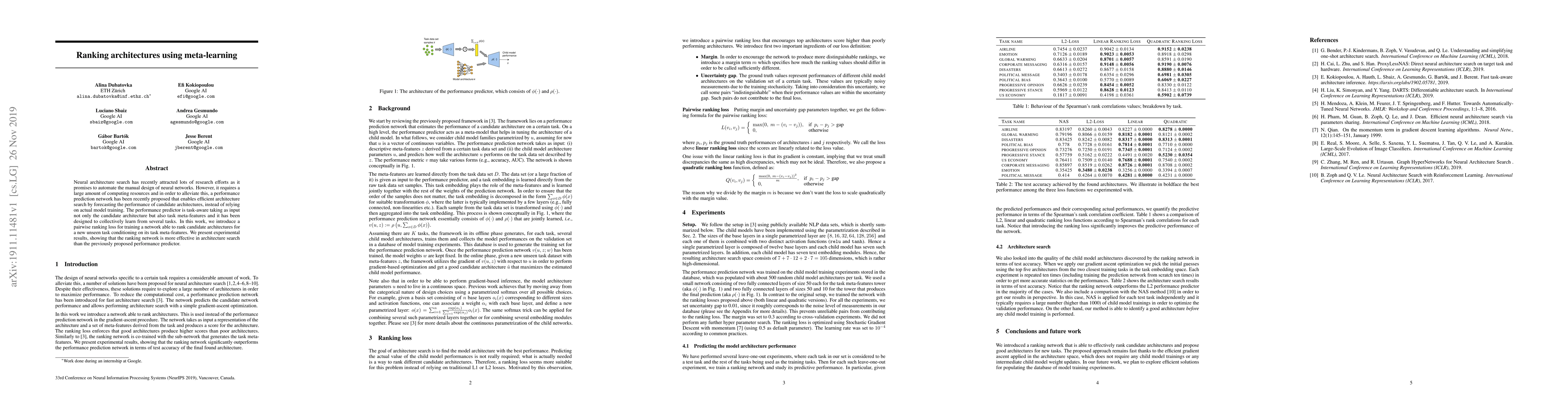 Researchers introduced a new method for ranking neural architectures using meta-learning, outperforming a previously proposed performance predictor in architecture search.