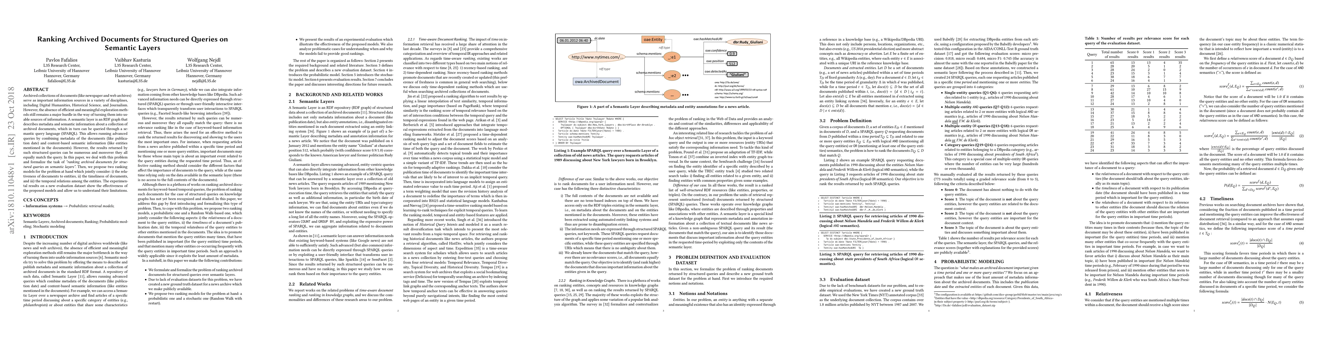 This paper addresses the challenge of efficiently exploring archived document collections by introducing a semantic layer that combines metadata and semantic information. It proposes two ranking models to prioritize documents based on relevance, timeliness, and temporal relations, demonstrating their effectiveness through experiments on a new dataset.