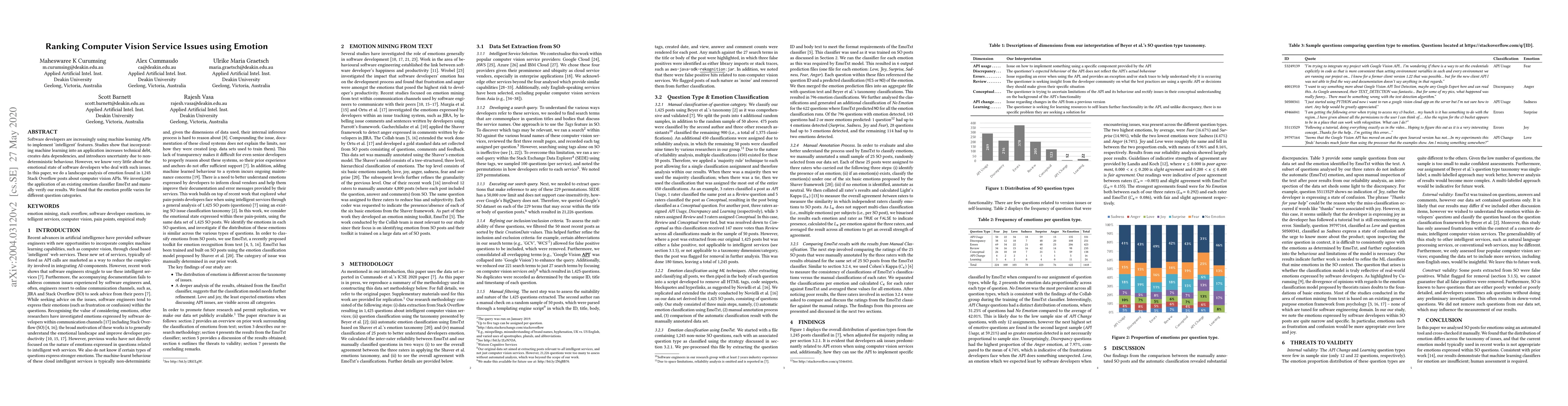 This paper analyzes emotions in 1,245 Stack Overflow posts related to computer vision APIs, using an emotion classifier and manual verification, revealing varying emotional profiles across different question categories. The study highlights the emotional impact on developers dealing with machine learning-related technical debt and uncertainties.