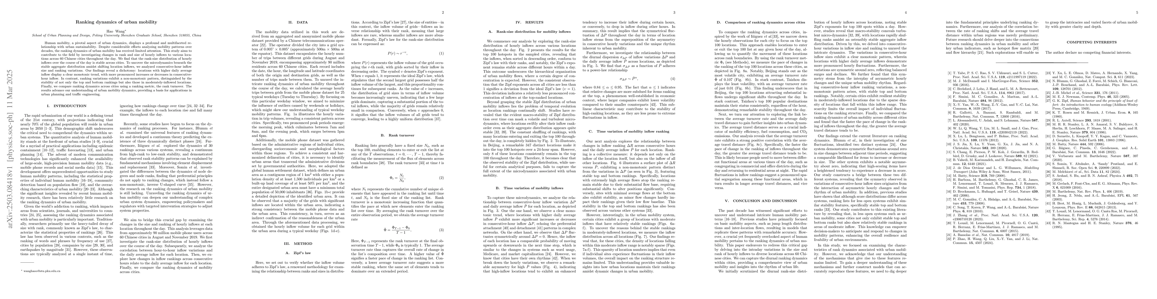 This study is among the first to focus on ranking dynamics of urban mobility, providing new insights into hourly mobility patterns and their stability across cities.