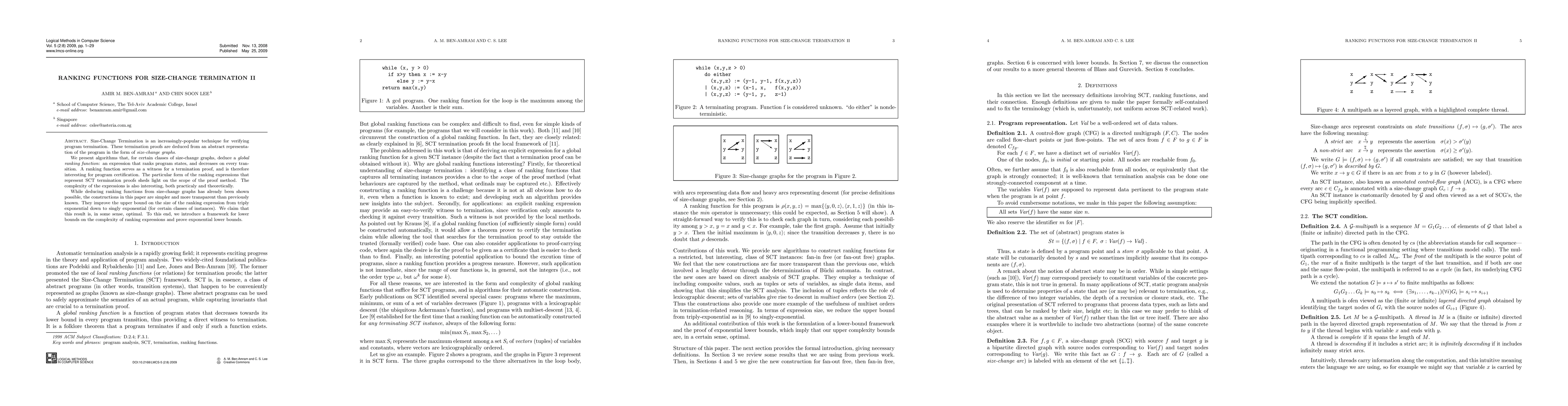 This paper presents improved algorithms for deducing global ranking functions from size-change graphs, reducing the complexity of the expressions from triply exponential to singly exponential for certain classes. It also introduces a framework for establishing lower bounds on ranking expression complexity, proving exponential lower bounds.
