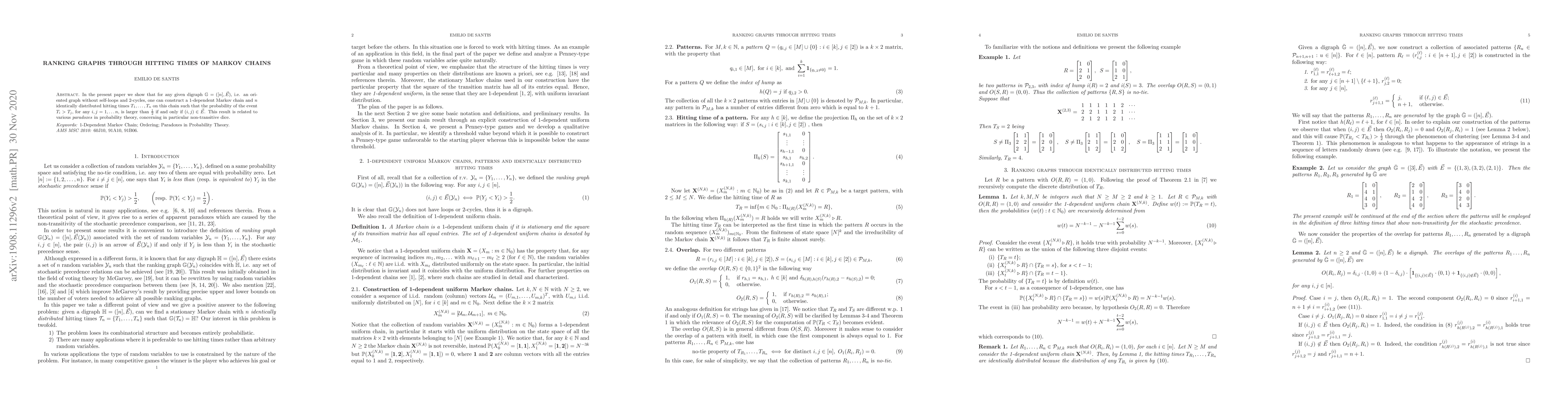 Researchers show that a specific type of graph can be ranked using Markov chains with hitting times, where longer paths lead to higher probabilities, related to paradoxes in probability theory.