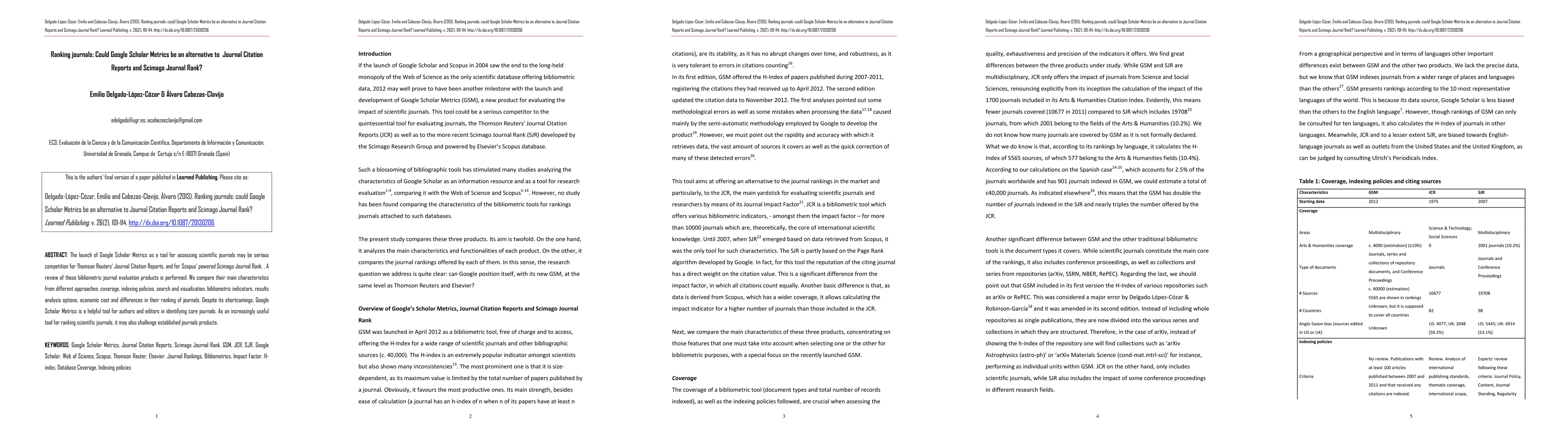 This paper reviews Google Scholar Metrics as a potential alternative to established journal ranking tools like Journal Citation Reports and Scimago Journal Rank, comparing their coverage, indexing policies, and bibliometric indicators. Despite its limitations, Google Scholar Metrics offers valuable insights for authors and editors, potentially challenging the dominance of traditional ranking systems.
