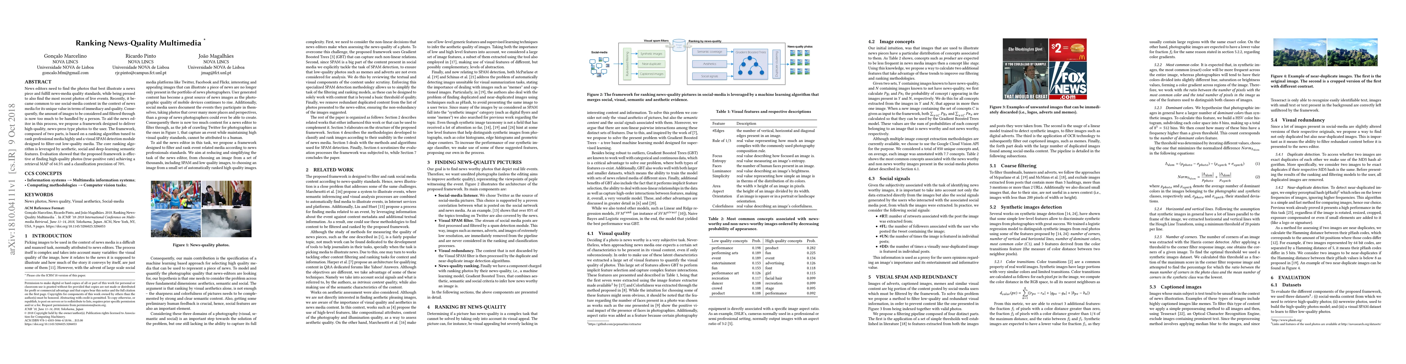 This paper proposes a framework to assist news editors in selecting high-quality, recent multimedia content from social media for news articles, using a ranking algorithm and visual SPAM detection. The framework achieved a retrieval MAP of 64.5% and classification precision of 70%.