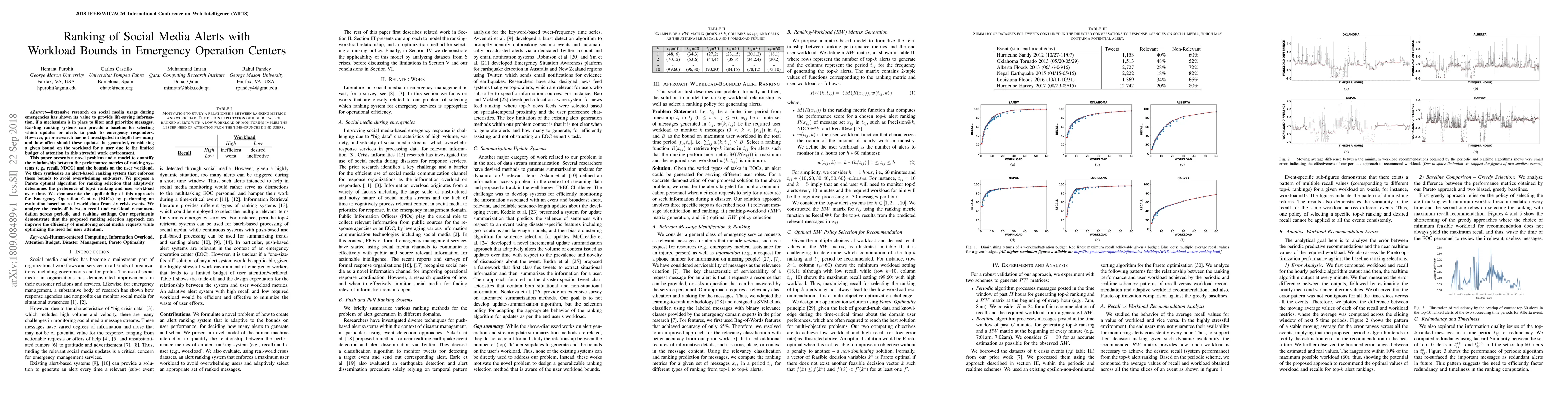 Extensive research on social media usage during emergencies has shown its value to provide life-saving information, if a mechanism is in place to filter and prioritize messages. Existing ranking systems can provide a baseline for selecting which updates or alerts to push to emergency responders. However, prior research has not investigated in depth how many and how often should these updates be generated, considering a given bound on the workload for a user due to the limited budget of attention in this stressful work environment. This paper presents a novel problem and a model to quantify the relationship between the performance metrics of ranking systems (e.g., recall, NDCG) and the bounds on the user workload. We then synthesize an alert-based ranking system that enforces these bounds to avoid overwhelming end-users. We propose a Pareto optimal algorithm for ranking selection that adaptively determines the preference of top-k ranking and user workload over time. We demonstrate the applicability of this approach for Emergency Operation Centers (EOCs) by performing an evaluation based on real world data from six crisis events. We analyze the trade-off between recall and workload recommendation across periodic and realtime settings. Our experiments demonstrate that the proposed ranking selection approach can improve the efficiency of monitoring social media requests while optimizing the need for user attention.