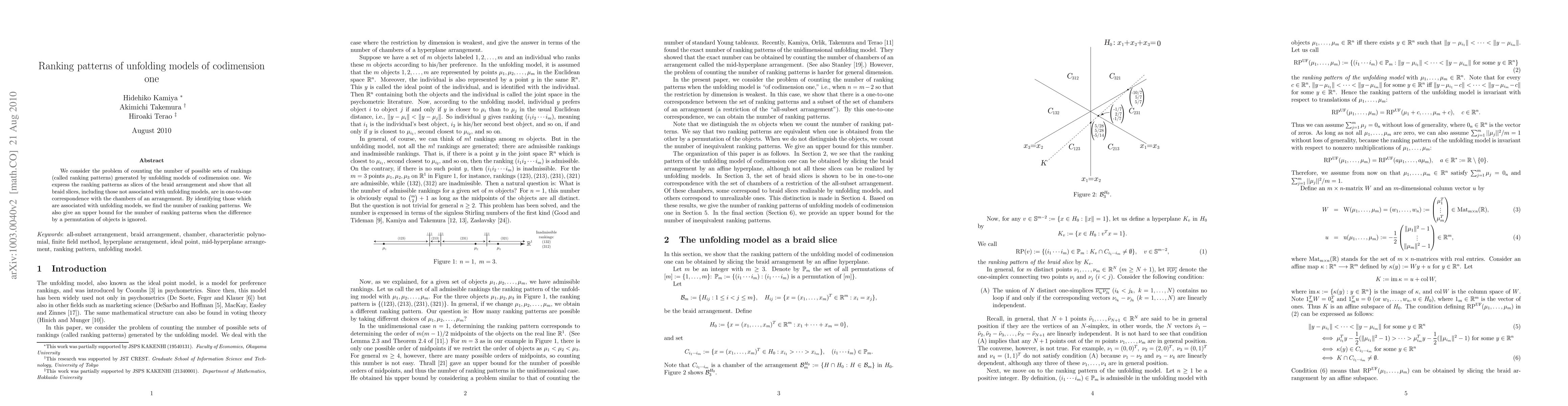 We consider the problem of counting the number of possible sets of rankings (called ranking patterns) generated by unfolding models of codimension one. We express the ranking patterns as slices of the braid arrangement and show that all braid slices, including those not associated with unfolding models, are in one-to-one correspondence with the chambers of an arrangement. By identifying those which are associated with unfolding models, we find the number of ranking patterns. We also give an upper bound for the number of ranking patterns when the difference by a permutation of objects is ignored.