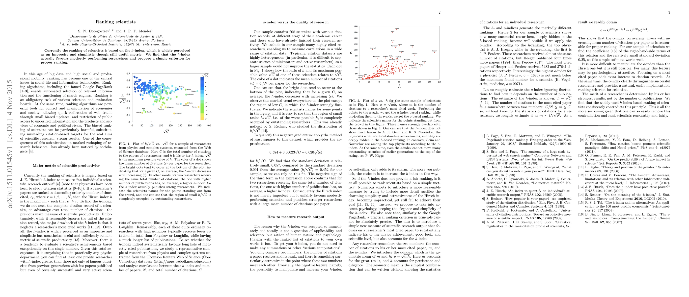 The h-index is found to favor modestly performing researchers and a new ranking criterion is proposed for more accurate scientist evaluation.