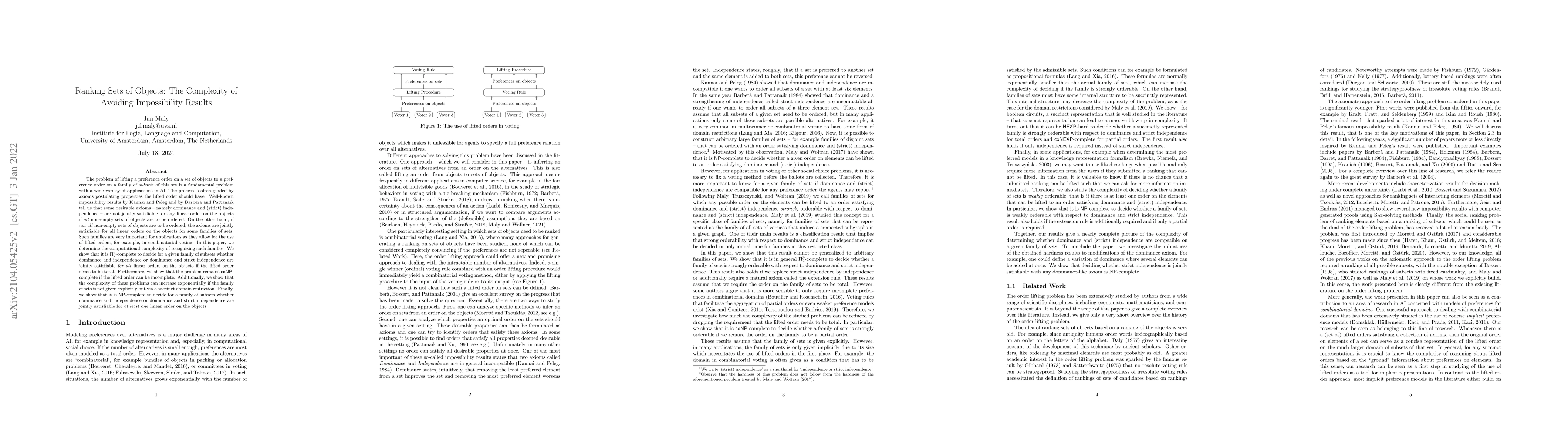 The problem of lifting a preference order on a set of objects to a preference order on a family of subsets of this set is a fundamental problem with a wide variety of applications in AI. The process is often guided by axioms postulating properties the lifted order should have. Well-known impossibility results by Kannai and Peleg and by Barber\`a and Pattanaik tell us that some desirable axioms - namely dominance and (strict) independence - are not jointly satisfiable for any linear order on the objects if all non-empty sets of objects are to be ordered. On the other hand, if not all non-empty sets of objects are to be ordered, the axioms are jointly satisfiable for all linear orders on the objects for some families of sets. Such families are very important for applications as they allow for the use of lifted orders, for example, in combinatorial voting. In this paper, we determine the computational complexity of recognizing such families. We show that it is $\Pi_2^p$-complete to decide for a given family of subsets whether dominance and independence or dominance and strict independence are jointly satisfiable for all linear orders on the objects if the lifted order needs to be total. Furthermore, we show that the problem remains coNP-complete if the lifted order can be incomplete. Additionally, we show that the complexity of these problem can increase exponentially if the family of sets is not given explicitly but via a succinct domain restriction. Finally, we show that it is NP-complete to decide for family of subsets whether dominance and independence or dominance and strict independence are jointly satisfiable for at least one linear orders on the objects.