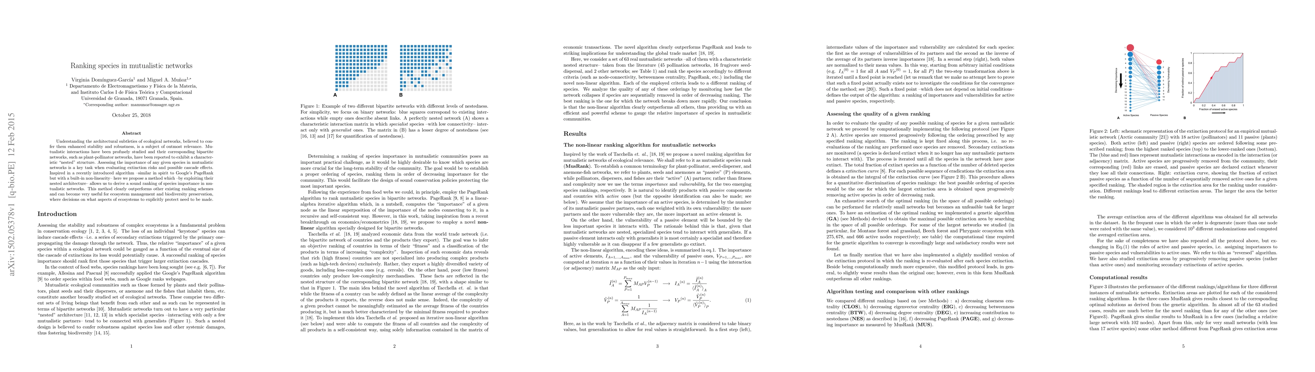 This paper proposes a novel ranking method for assessing species importance in mutualistic networks, leveraging the nested structure of these networks. The new method outperforms existing schemes and holds significant potential for ecosystem management and biodiversity conservation.