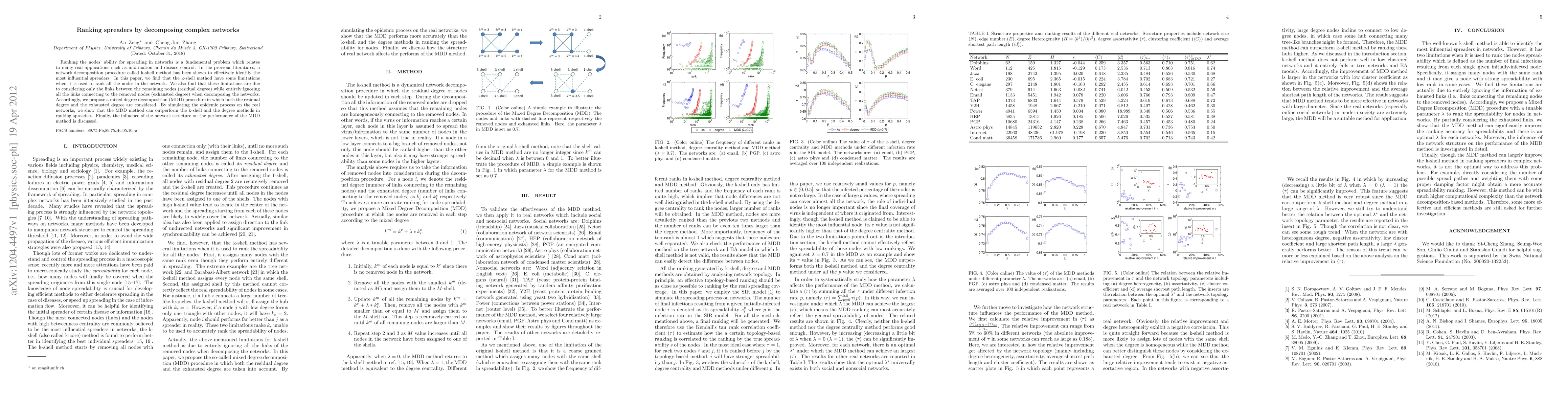 This paper proposes a mixed degree decomposition (MDD) method to rank nodes' spreading ability in complex networks, addressing limitations of the k-shell method by considering both residual and exhausted degrees. The MDD method outperforms the k-shell and degree methods in real network simulations, highlighting the impact of network structure on its effectiveness.