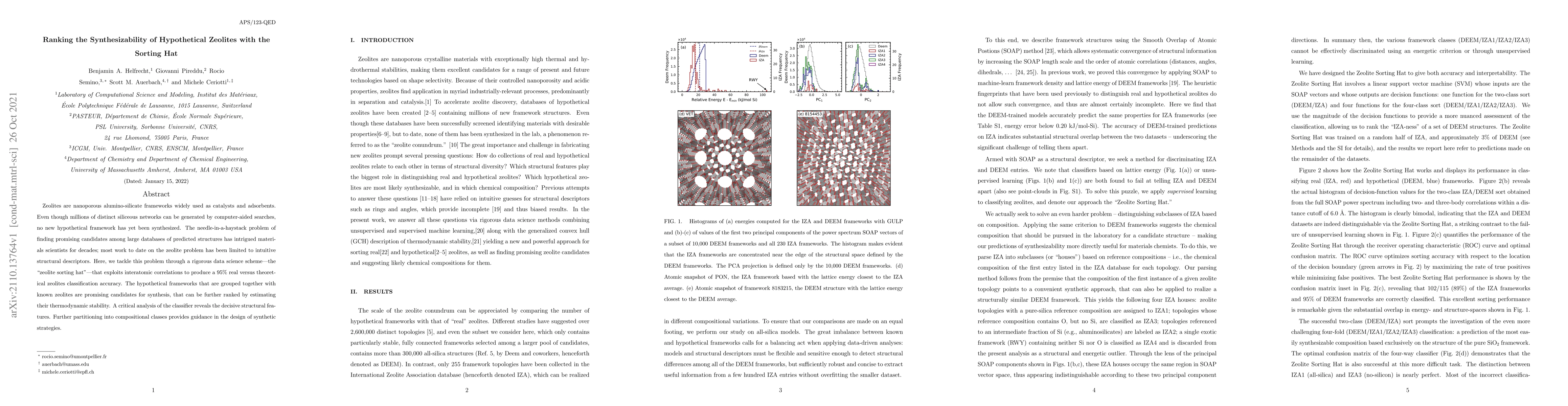 This research introduces a 'zeolite sorting hat' using data science to predict synthesizable hypothetical zeolites with 95% accuracy. It identifies key structural features and guides synthetic strategy design.
