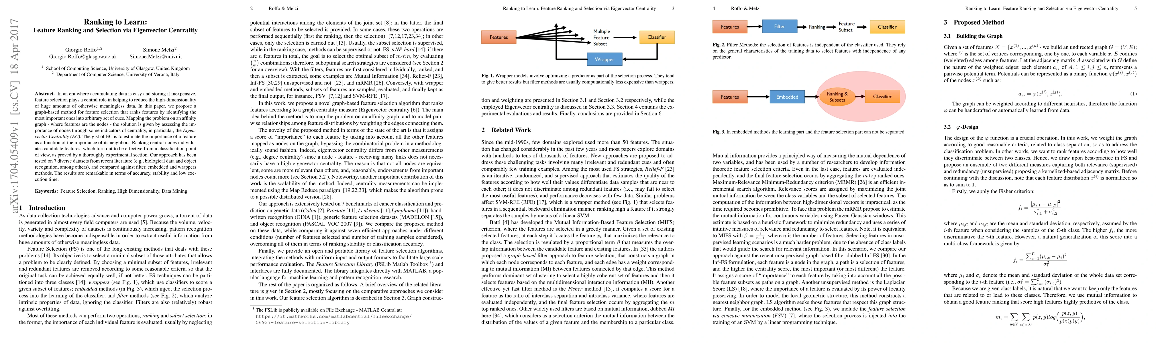 A graph-based method ranks features based on centrality indicators to identify the most important ones, achieving high accuracy in classification tasks. The approach outperforms traditional feature selection methods.