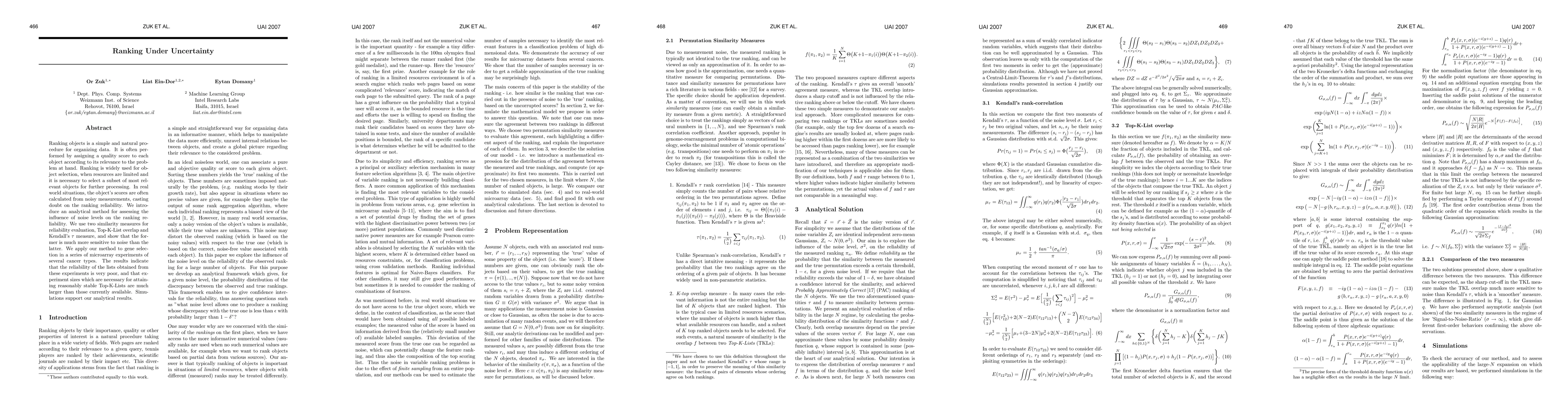 This paper introduces a method to assess the reliability of rankings under uncertainty caused by noisy measurements. It shows that smaller experiment sizes may not produce stable rankings due to noise levels.