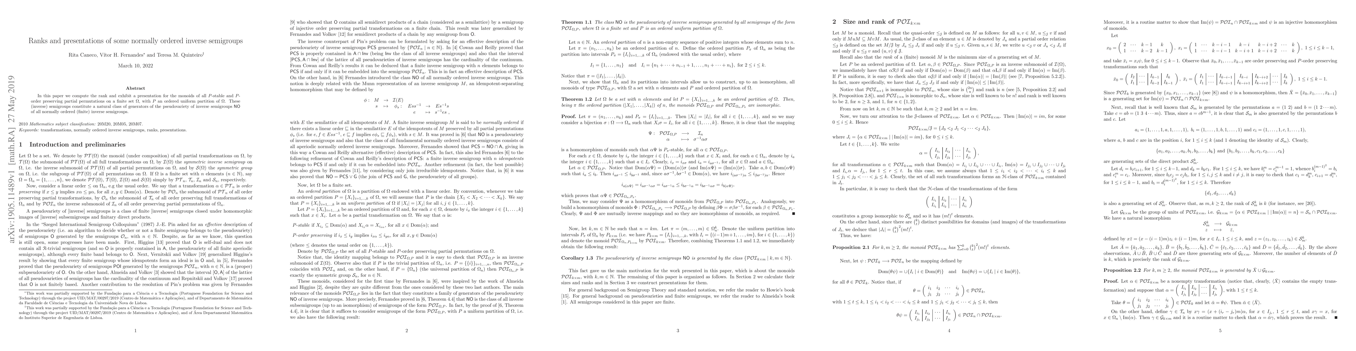 This paper computes the rank and provides a presentation for monoids of $P$-stable and $P$-order preserving partial permutations on a finite set $\Omega$, where $P$ is an ordered uniform partition. These inverse semigroups generate the pseudovariety of normally ordered inverse semigroups.