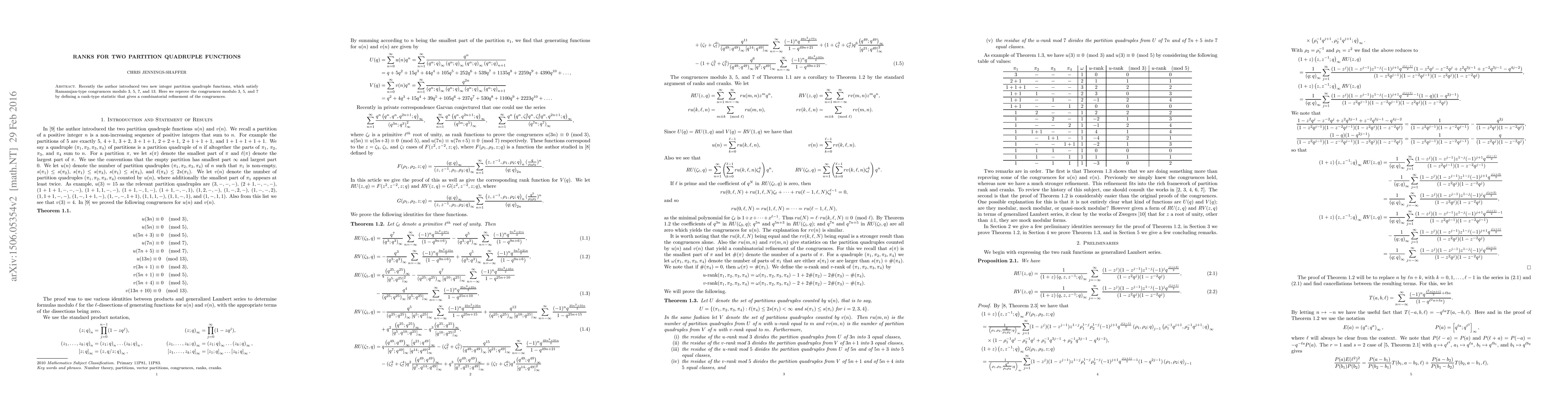 Recently the author introduced two new integer partition quadruple functions, which satisfy Ramanujan-type congruences modulo $3$, $5$, $7$, and $13$. Here we reprove the congruences modulo $3$, $5$, and $7$ by defining a rank-type statistic that gives a combinatorial refinement of the congruences.