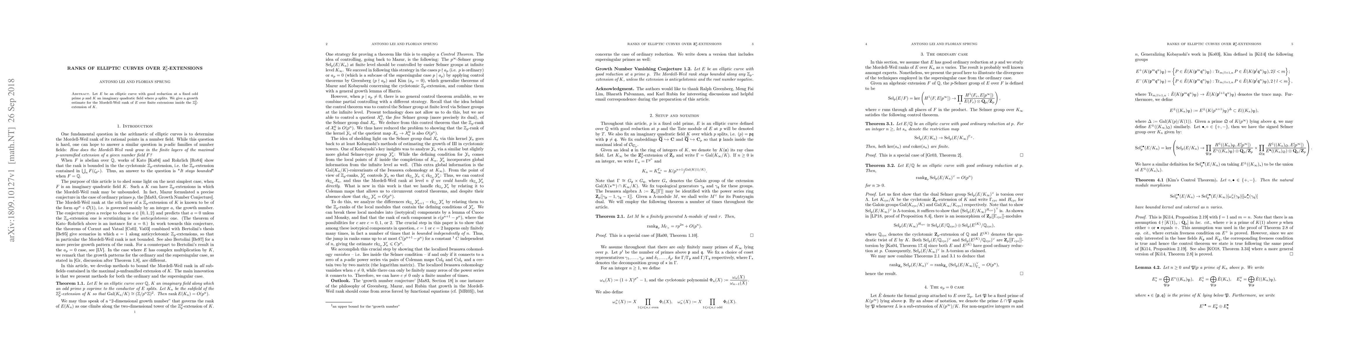 This paper estimates the growth of Mordell-Weil ranks for elliptic curves over finite extensions inside a Z_p^2-extension of an imaginary quadratic field K, where p is an odd prime that splits in K. The study provides new insights into the behavior of these ranks in relation to the extension's properties.