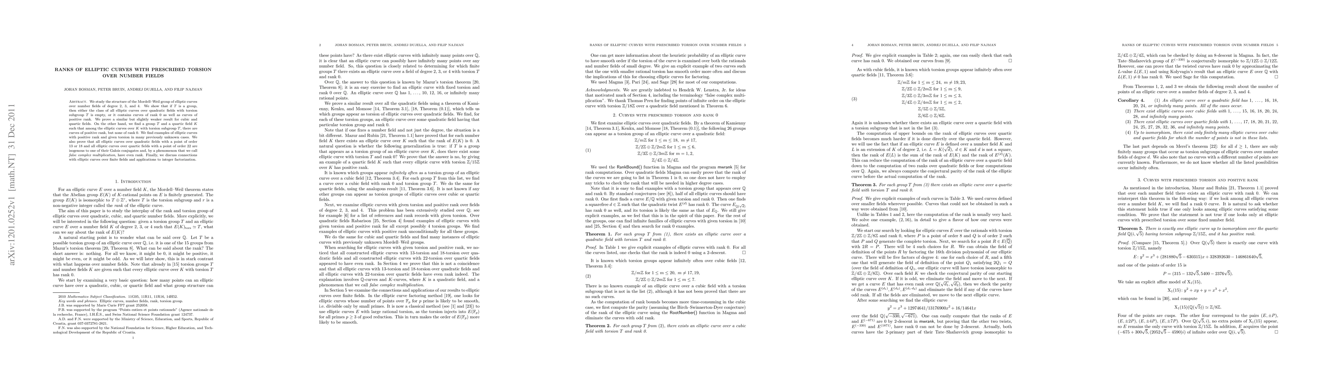 This paper explores the Mordell-Weil group of elliptic curves over number fields of degrees 2, 3, and 4, showing that elliptic curves with a given torsion subgroup either have rank 0 or positive rank. It also identifies specific cases where positive rank curves exist without rank 0 curves and discusses connections to elliptic curves over finite fields and applications to integer factorization.