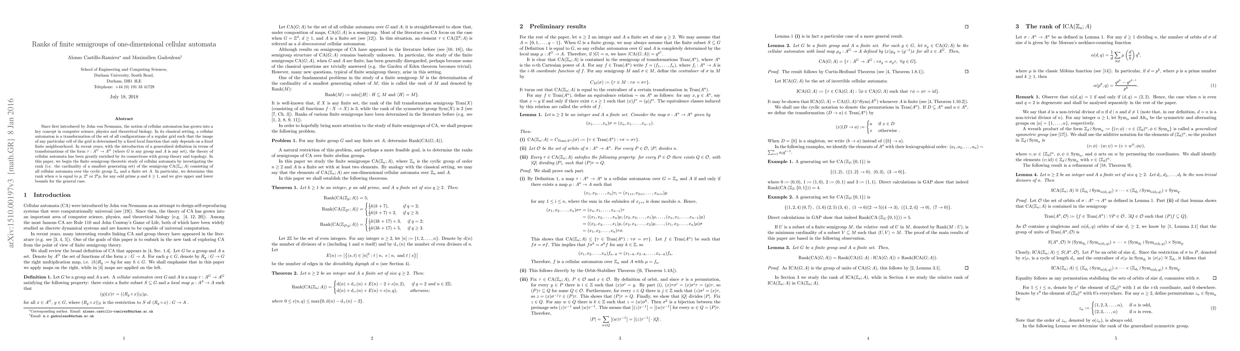 Since first introduced by John von Neumann, the notion of cellular automaton has grown into a key concept in computer science, physics and theoretical biology. In its classical setting, a cellular automaton is a transformation of the set of all configurations of a regular grid such that the image of any particular cell of the grid is determined by a fixed local function that only depends on a fixed finite neighbourhood. In recent years, with the introduction of a generalised definition in terms of transformations of the form $\tau : A^G \to A^G$ (where $G$ is any group and $A$ is any set), the theory of cellular automata has been greatly enriched by its connections with group theory and topology. In this paper, we begin the finite semigroup theoretic study of cellular automata by investigating the rank (i.e. the cardinality of a smallest generating set) of the semigroup $\text{CA}(\mathbb{Z}_n; A)$ consisting of all cellular automata over the cyclic group $\mathbb{Z}_n$ and a finite set $A$. In particular, we determine this rank when $n$ is equal to $p$, $2^k$ or $2^kp$, for any odd prime $p$ and $k \geq 1$, and we give upper and lower bounds for the general case.