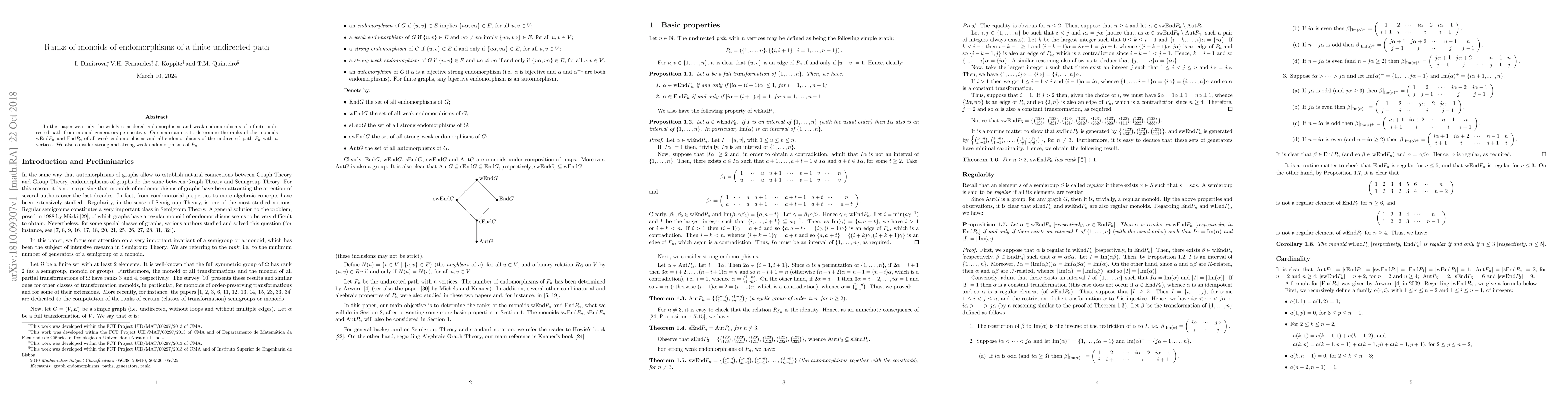 In this paper we study the widely considered endomorphisms and weak endomorphisms of a finite undirected path from monoid generators perspective. Our main aim is to determine the ranks of the monoids $wEnd P_n$ and $End P_n$ of all weak endomorphisms and all endomorphisms of the undirected path $P_n$ with $n$ vertices. We also consider strong and strong weak endomorphisms of $P_n$.