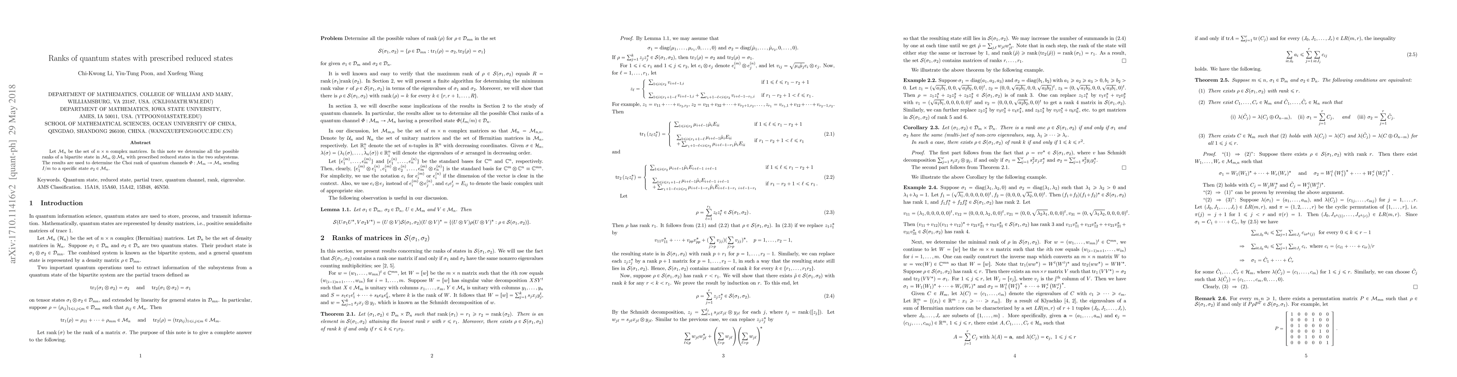 This paper identifies all possible ranks for bipartite states in M_m⊗M_n with specified reduced states in each subsystem. The findings are applied to determine the Choi rank of quantum channels mapping I/m to a particular state in M_n.