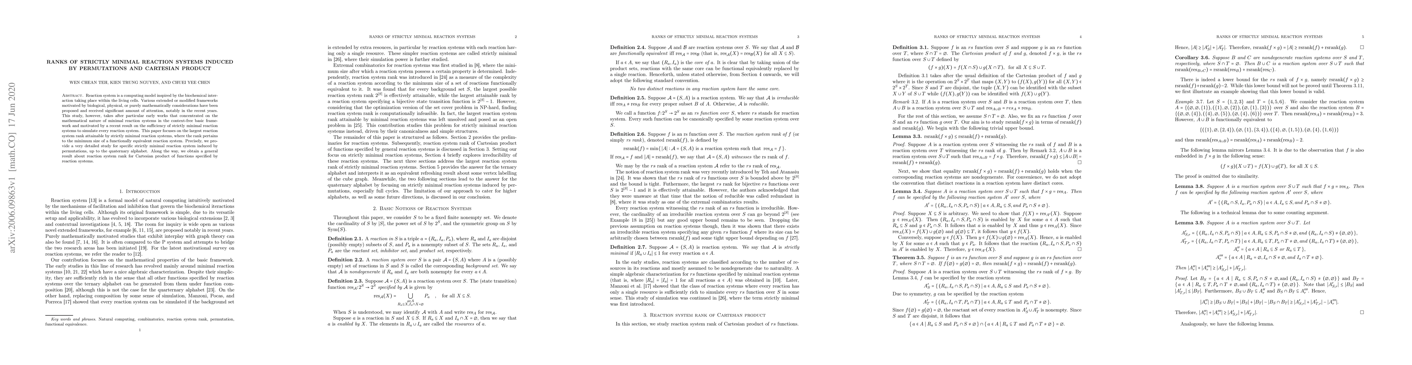 Reaction system is a computing model inspired by the biochemical interaction taking place within the living cells. Various extended or modified frameworks motivated by biological, physical, or purely mathematically considerations have been proposed and received significant amount of attention, notably in the recent years. This study, however, takes after particular early works that concentrated on the mathematical nature of minimal reaction systems in the context-free basic framework and motivated by a recent result on the sufficiency of strictly minimal reaction systems to simulate every reaction system. This paper focuses on the largest reaction system rank attainable by strictly minimal reaction systems, where the rank pertains to the minimum size of a functionally equivalent reaction system. Precisely, we provide a very detailed study for specific strictly minimal reaction system induced by permutations, up to the quaternary alphabet. Along the way, we obtain a general result about reaction system rank for Cartesian product of functions specified by reaction systems.
