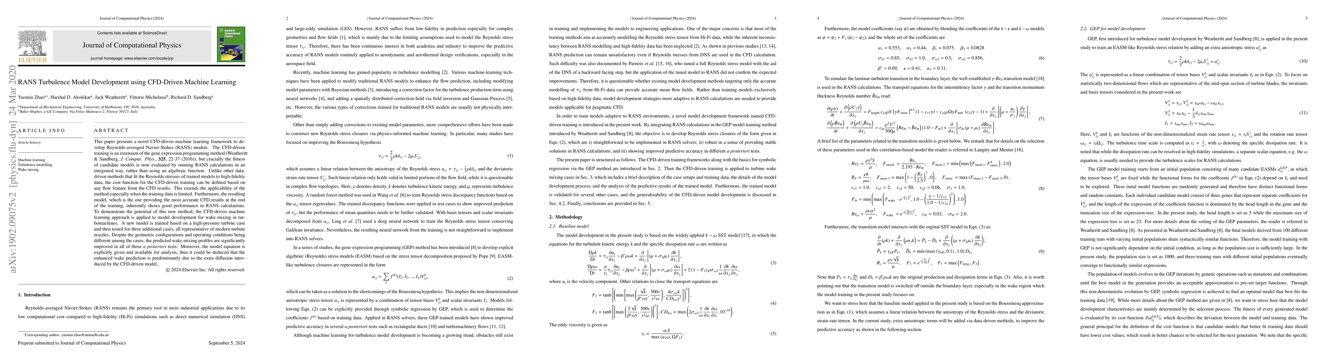 This paper introduces a CFD-driven machine learning framework for developing RANS turbulence models, extending gene expression programming to evaluate models through integrated RANS calculations. The method shows improved performance in wake mixing predictions for turbomachinery, demonstrating enhanced wake prediction due to increased diffusion.