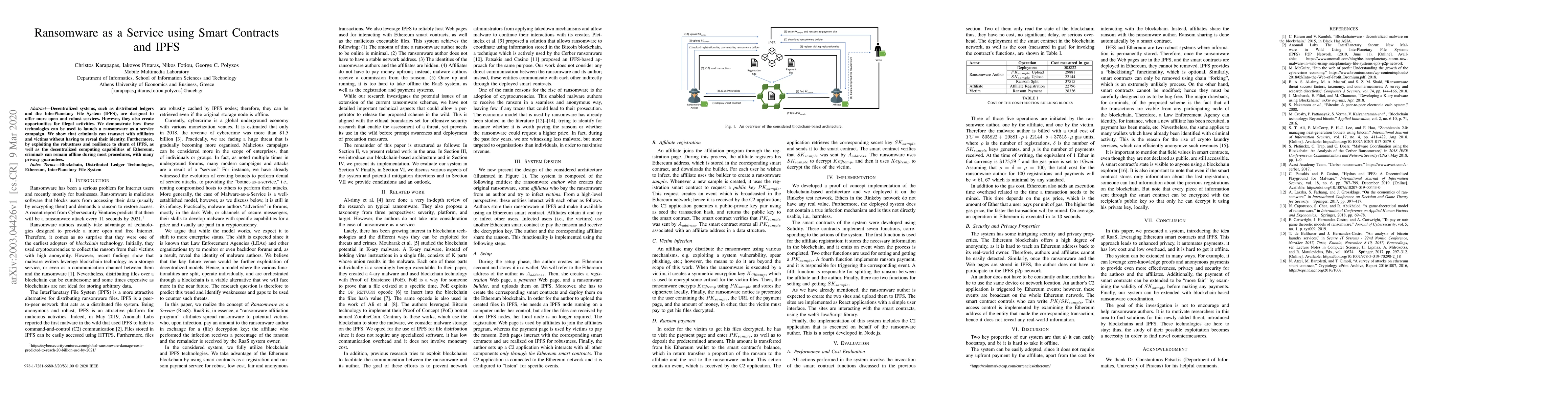 Research shows how decentralized systems like IPFS and Ethereum can be exploited for ransomware as a service campaigns, allowing anonymous transactions and privacy guarantees.