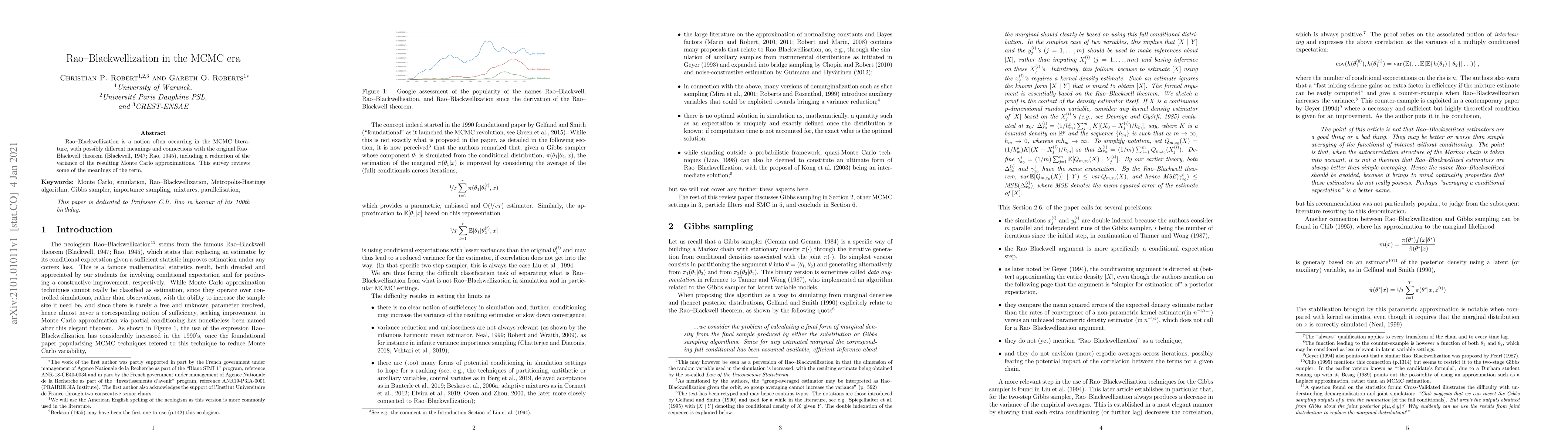 Rao-Blackwellization is a notion often occurring in the MCMC literature, with possibly different meanings and connections with the original Rao--Blackwell theorem (Rao, 1945 and Blackwell,1947), including a reduction of the variance of the resulting Monte Carlo approximations. This survey reviews some of the meanings of the term.