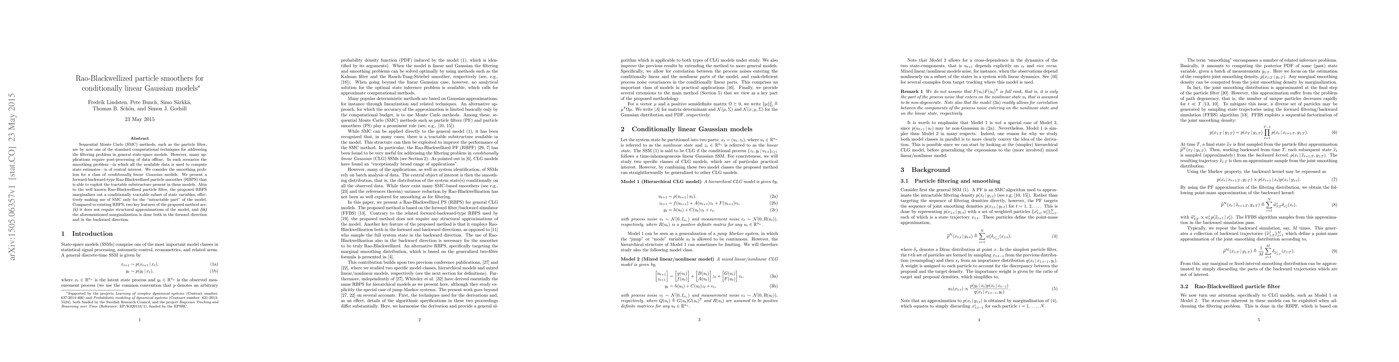 The paper presents a Rao-Blackwellized particle smoother (RBPS) for conditionally linear Gaussian models, specifically hierarchical and mixed linear/nonlinear models, by exploiting tractable substructures and avoiding structural approximations.