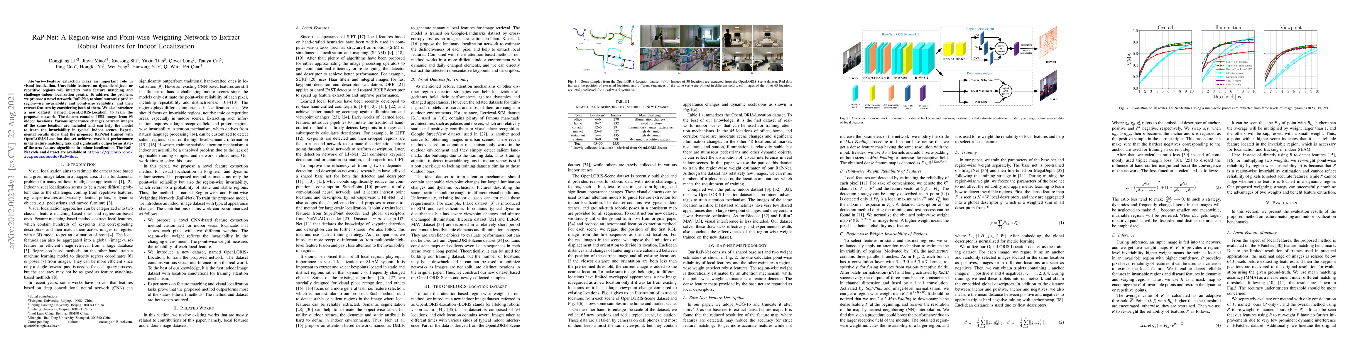 RaP-Net is a novel network designed to extract robust features for indoor localization by predicting region-wise invariability and point-wise reliability. It outperforms existing algorithms, validated using a new dataset, OpenLORIS-Location, which includes images from 93 indoor locations with various appearance changes.