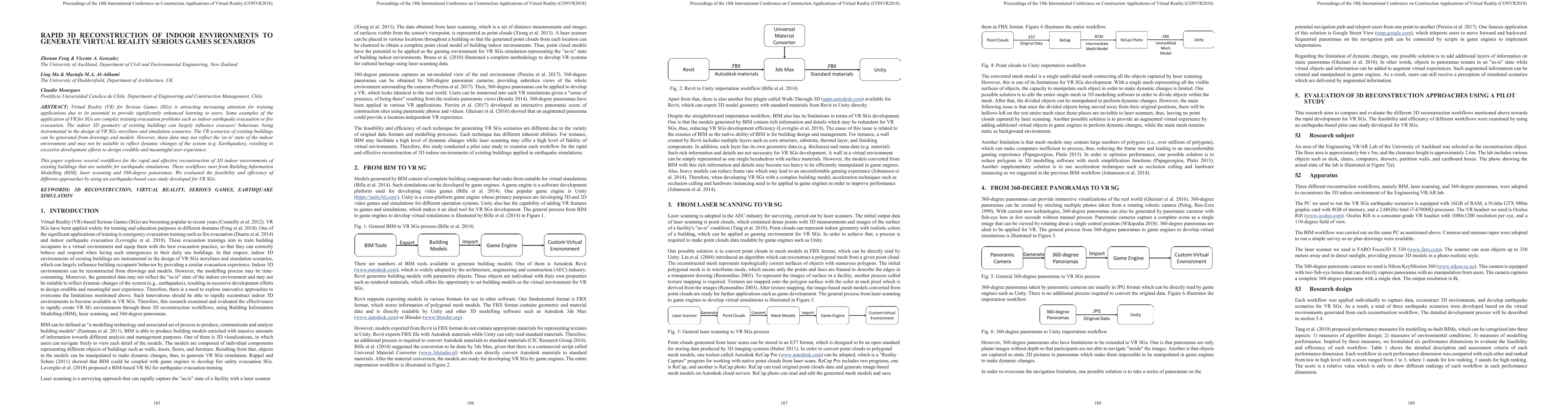This paper investigates workflows for rapid 3D reconstruction of indoor environments using BIM, laser scanning, and 360-degree panoramas to create accurate VR serious game scenarios, particularly for earthquake simulations, and evaluates their effectiveness through a case study.