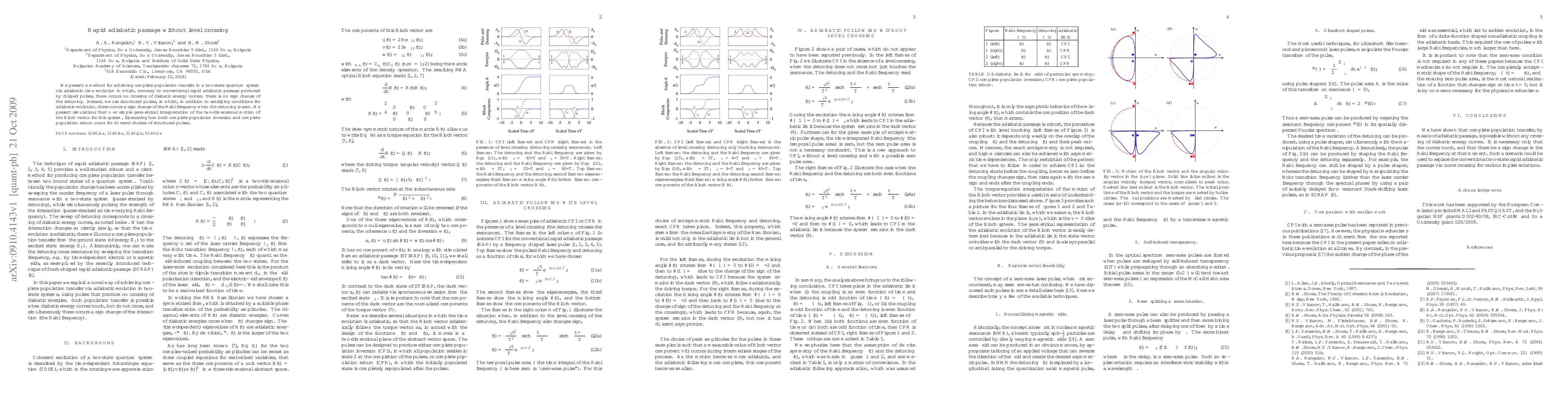 Researchers developed a method for transferring complete population in a two-state quantum system using adiabatic time evolution without crossing diabatic energy curves, achieving efficient population inversion and return.